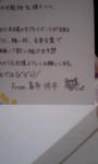 1.オタクの歩み 一人っ子だったので小学校の頃からアニメは毎日見てました。 オタクになったのは、たぶん高校の時、外部から入ってきた友人(本棚のような子だった)が見せてもらったシリル(ハリポのシリウス&リーマス)の同人を読んだときからだと…。そのイラストが超キレイだったからそっからずぶずぶ。 半年?くらいたって、種を好きになったらすごいことになった。 2.影響を受けた作家や絵師はいますか? 高校の頃は創作よりも真似してかくのが好きだったので、今はその名残があるのかも? ・CLAMP(CCさくら) ・渡辺多恵子さん(風光る) (・はるなやよいさん(そのシリルを書いていた同人作家さん)) 色の塗り方は ・マツモトトモさん(LaLaの企画で紹介されたのをベースにしています) 小説は ・今から作家!―サラリーマン・OLをしながら作家になる方法 唐沢 明著 (↑最初は本当の作家みたいな話が書きたくて読んでました) ・作家デビュー完全必勝講座 若桜木 虔著 (↑例が書いてあるのでかなり分かりやすいです) で、サイト用に書き方を変えた作家?さんは (・水城さん(某アスキラサイトさんをしている一般の方。この方の書き方を読んで今の形になりました)) 3.今まで描(書)いた中で一番楽しかったもの、大変だったものは? 楽しかったのは、高校時代に部活で描いたゲトバの佳月。 大変だったのは、中学校時代に美術の時間に描いた、大きい画用紙を八枚?くらい繋げて書いた新選組(試衛館メンバー+斉藤一) 4.作品を描(書)いていて変わった事、嬉しかった事、悩み事 ・趣味がそれまでなかったので、趣味が出来て嬉しかったです。 ・作品を褒められると嬉しい。 ・それが元で友達がたくさんできました。 ・うまくかけないと落ち込みます。 5.今までの作品の癖みたいなもの ・顔が丸いから大人っぽい絵がかけない。 ・バランス重視するようになってから、動きのある絵が描けなくなりました。 ・なんでもない日常的な話を描くのが好き。 ・眼から描く。 6.アナログとデジタルではどちらが作品を創りやすいですか? 断然アナログで。ペンタブも買ってみましたが、書きたいと思う色や線がでなくて…。 7.作品を描(書)く上での理想と現実 理想 ・紙とシャーペンがあればさっさと描けるようになりたい。 ・動きのある絵が描きたい。 ・個性を出したい。 現実 ・バランスばかり気になって思い切った絵がかけません; ・考え込む癖があるので手が止まる。 ・自己主張がいまいちできないA型。笑 8.作品を描(書)く上で学んだ教訓 ・個性を主張しすぎるか、個性を殺すかどちらかじゃないと人に受け入れてもらえる作品は作れない ・作る為にはたくさんの作品をみることがいる 9.これからチャレンジしたい事 ・いつも中途半端にやめてしまうので作品を完成させたい。 ・サイトを立ち上げたので、更新を頑張りたい。 10.次に回す歴史が知りたい5人 *** 実は、たまたま覗いたブログにあったものを拾ったものだったり。 ************************************************** TR見ましたー。大好きだ! 友人からもPerfume出てるってメール着てホクホク♪ やっぱりマイペースな三人ですが、あのマイペースさが引き込まれる要因でもあるのかなぁなんて。 今度は堂本兄弟に出るようなので超たのしみです>< 明日アルバム発売日!そいで、名古屋に行って定期券を購入してきます。 明日は頑張って早めに起きよう!